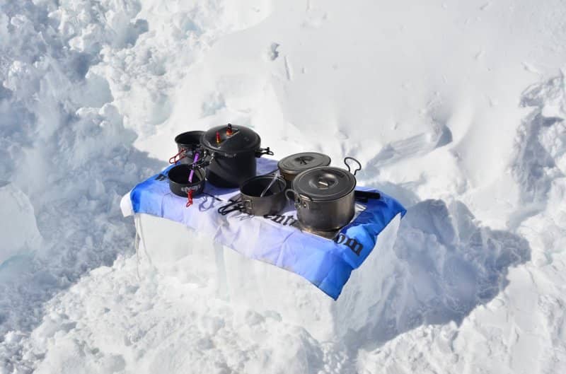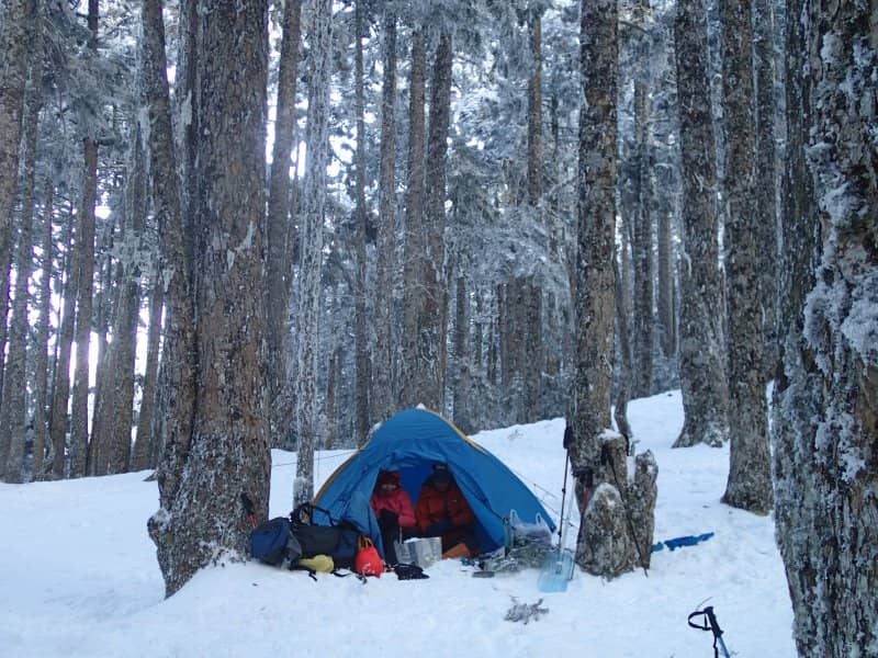雪地紮營睡在雪地上,也是很特別的經驗,雪地登山還有一件最好的事,就是不用擔心缺水,直接拿雪融化就可以炊煮。
