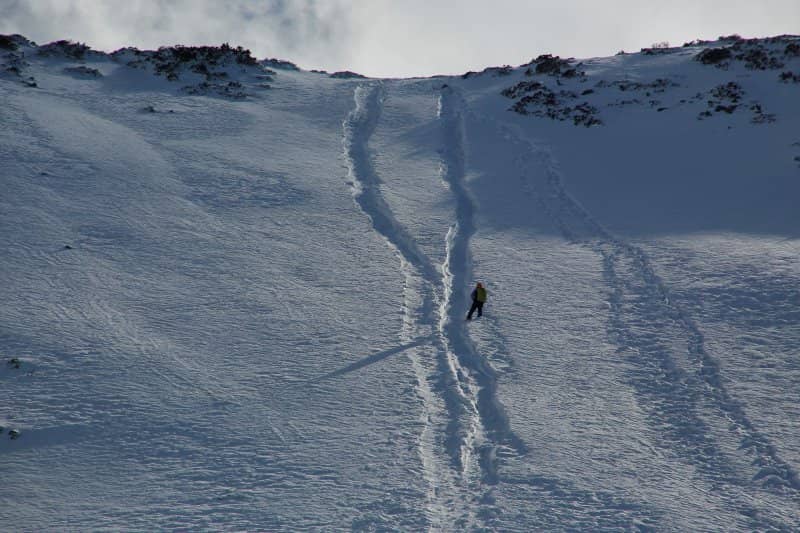 被雪完全覆蓋的山坡,不一定要走既有的路線,看好登頂的方向,可以隨意選擇行走的路線,很自由不受限。